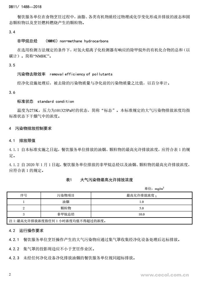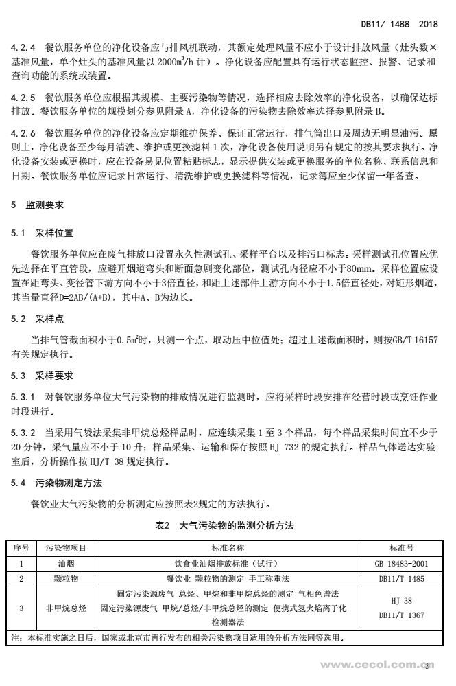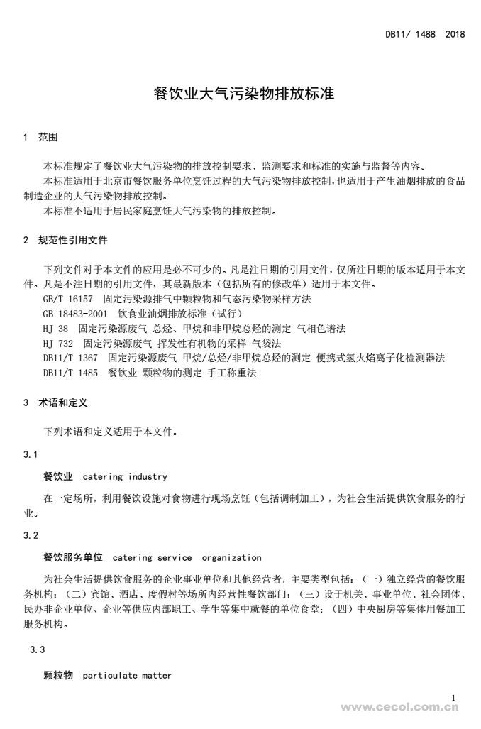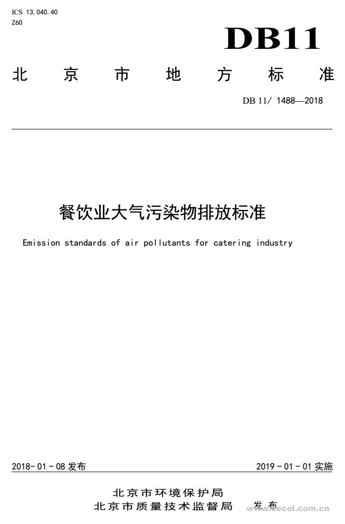 2018年北京市《餐飲業(yè)大氣污染物排放標(biāo)準(zhǔn)》(DB 11/1488-2018)